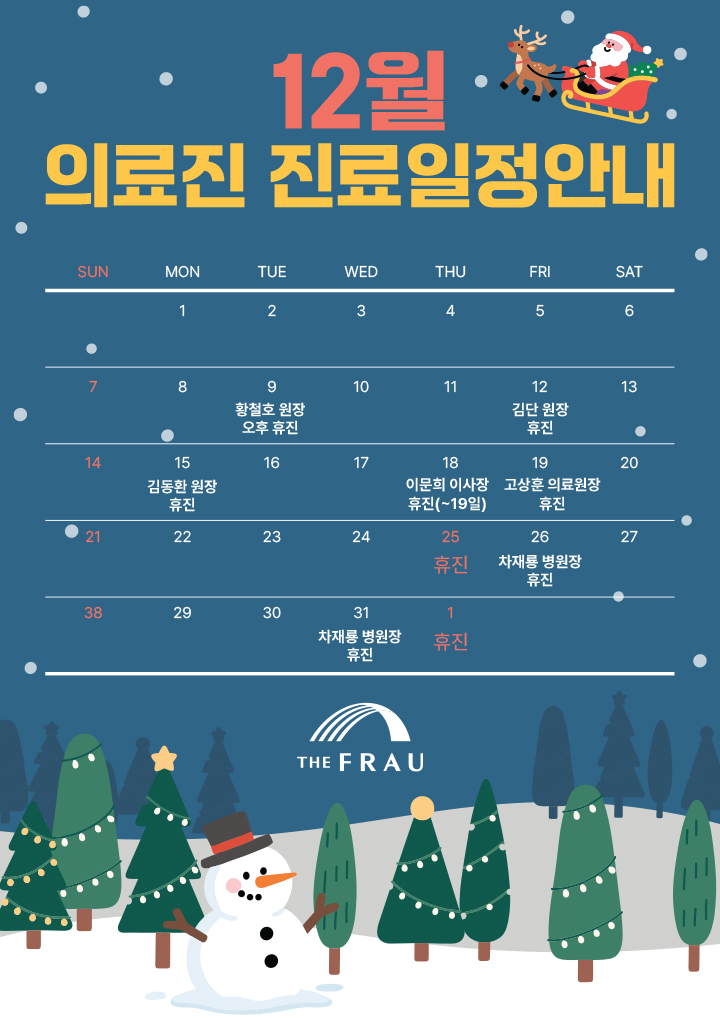 12월 의료진 진료 일정 안내